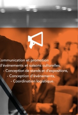 Communication et promotion d’événements et saisons culturelles, - Conception de stands et d’expositions, - Conception d’événements, - Coordination logistique.