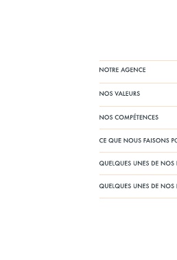 NOTRE AGENCE NOS VALEURS NOS COMPÉTENCES CE QUE NOUS FAISONS PO QUELQUES UNES DE NOS R QUELQUES UNES DE NOS R
