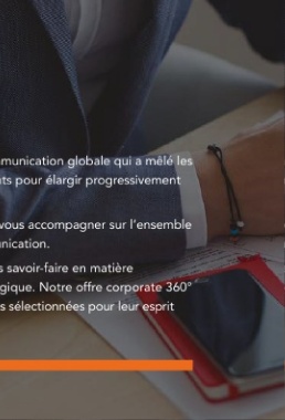 mmunication globale qui a mêlé les nts pour élargir progressivement vous accompagner sur l’ensemble unication. s savoir-faire en matière gique. Notre offre corporate 360° es sélectionnées pour leur esprit