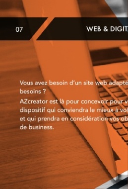 07 WEB & DIGITA Vous avez besoin d’un site web adapté besoins ? AZcreator est là pour concevoir pour vo dispositif qui conviendra le mieux à vot et qui prendra en considération vos ob de business.